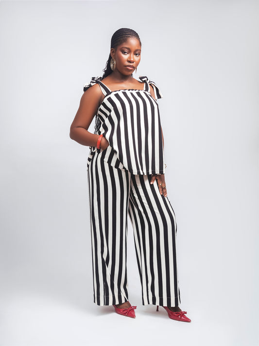 Julia Structured Peplum Top & Wide-Leg Pants Set