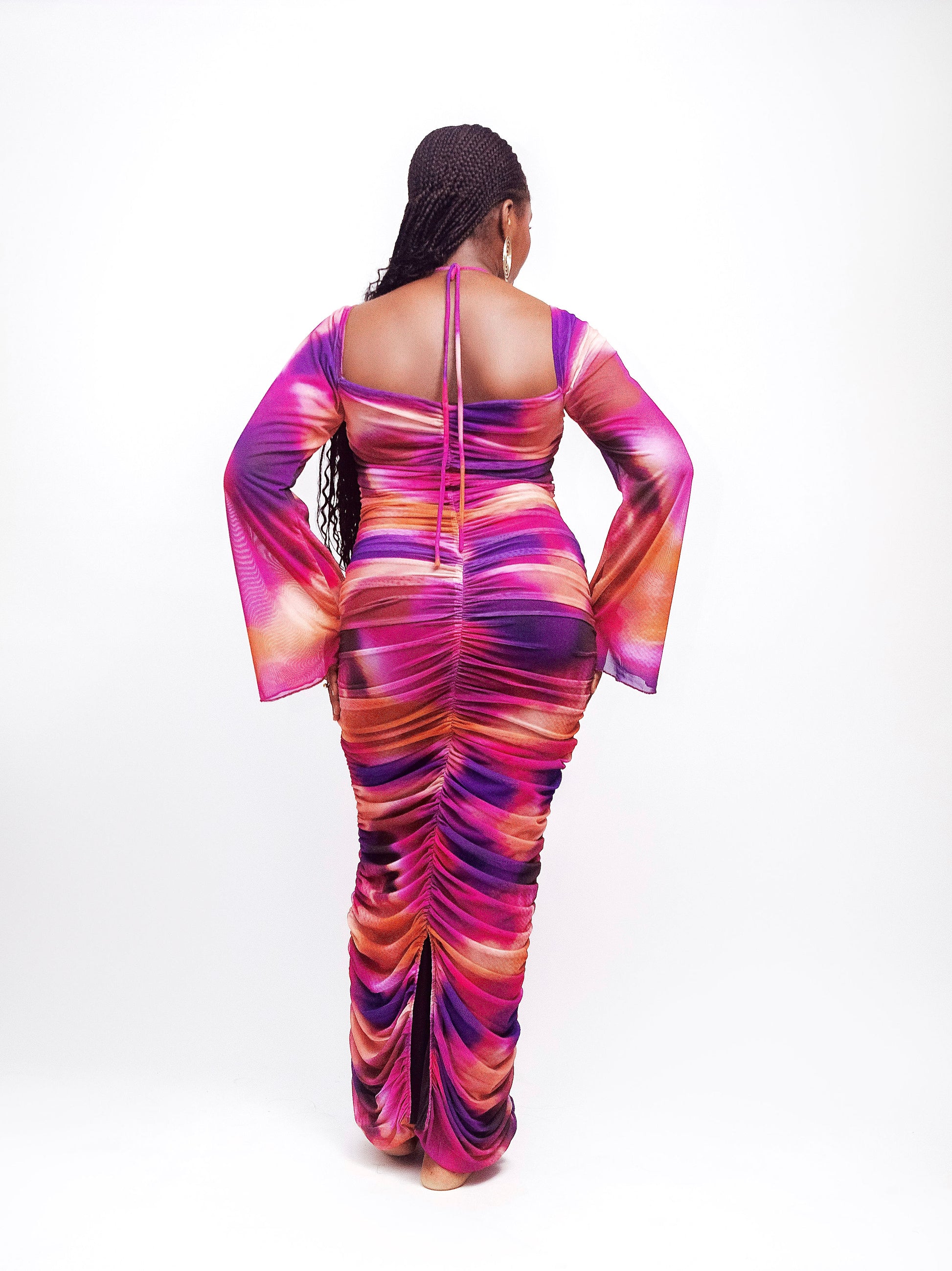 • Silhouette: Bodycon with full-length ruching