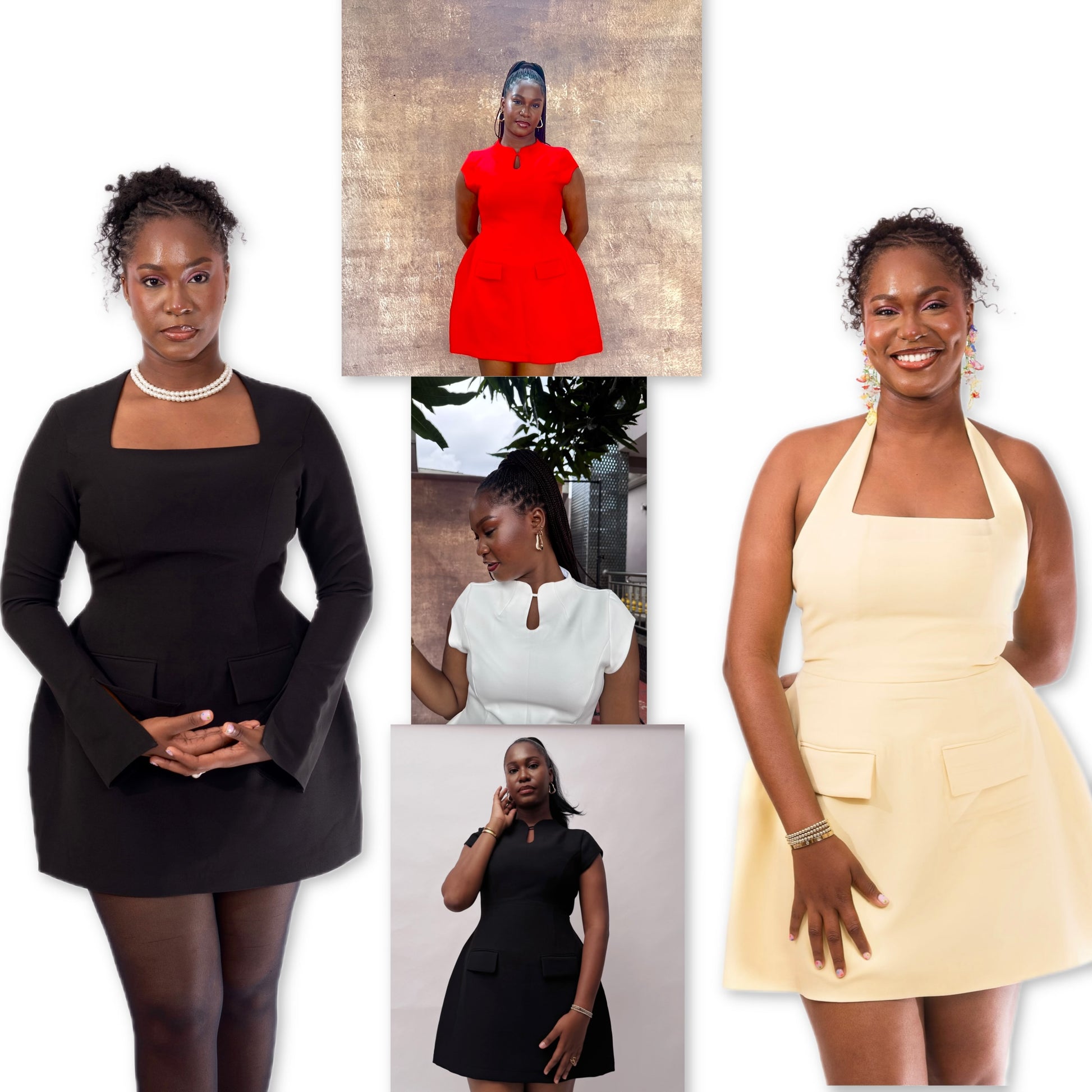 - Mel Structured Dress in Short Cap Sleeves – your choice of Black, White, or Red